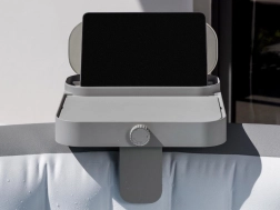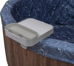 Jedna półka, cztery możliwości: stabilny stolik na napoje i przekąski, zamykany schowek na drobiazgi, wieszak na ręczniki oraz bezpieczny uchwyt na tablet do oglądania filmów w jacuzzi.