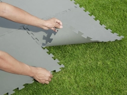Wytrzymała pianka chroni trawnik, kostkę i drewniane tarasy przed uszkodzeniami oraz zapewnia przyjemne sprężynowanie.