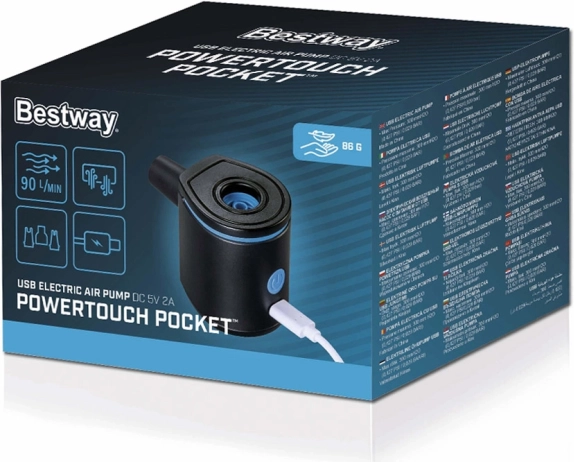 Szukasz małej, ale mocnej pompki, którą zabierzesz wszędzie? BESTWAY POWERTOUCH POCKET USB zmieści się w kieszeni, plecaku czy torbie podróżnej. Zasilana przez USB, łatwo podłączysz ją do ładowarki, powerbanku lub w samochodzie i w kilka chwil napompujesz to, czego potrzebujesz.