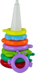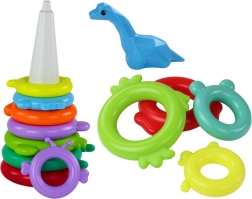 Stopniowe nakładanie krążków od największego do najmniejszego uczy dzieci sortowania według wielkości, trenuje cierpliwość i wspiera kreatywną zabawę. Nasycone kolory i atrakcyjny motyw żyrafy przyciągają uwagę, a mali odkrywcy doskonalą zręczność palców.