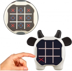 Właściwości produktu: - Interaktywne efekty świetlne i dźwiękowe: Każda rozgrywka staje się bardziej ekscytująca i angażująca. - Uroczy design inspirowany krową: Idealny do przyciągania uwagi dzieci. - Lekka i kompaktowa konstrukcja: Łatwa do przenoszenia do szkoły, w podróży, na wakacjach lub podczas spotkań z przyjaciółmi. - Trzy różne tryby gry: - Kółko i krzyżyk: Tradycyjna gra strategiczna. - Gra we dwoje: Idealna dla dwóch graczy, wspiera umiejętności społeczne. - Pamięć: Trening pamięci i koncentracji.