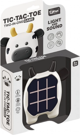 Parametry techniczne: - Wymiary gry: 12 x 11,5 x 3 cm - Wymiary opakowania: 26,5 x 15 x 4 cm - Materiał: Wysokiej jakości tworzywo sztuczne - Zasilanie: 2 x 1,5 V AA (w zestawie) - Maksymalna liczba graczy: 2 - Typ gry: Elektroniczna, edukacyjna - Tryby gry: 3 tryby – Kółko i krzyżyk, Gra we dwoje, Pamięć - Efekty dźwiękowe: Tak - Efekty świetlne: Tak, podświetlana plansza - Motyw: Krowa - Przeznaczenie: Dzieci, dorośli, gra rodzinna