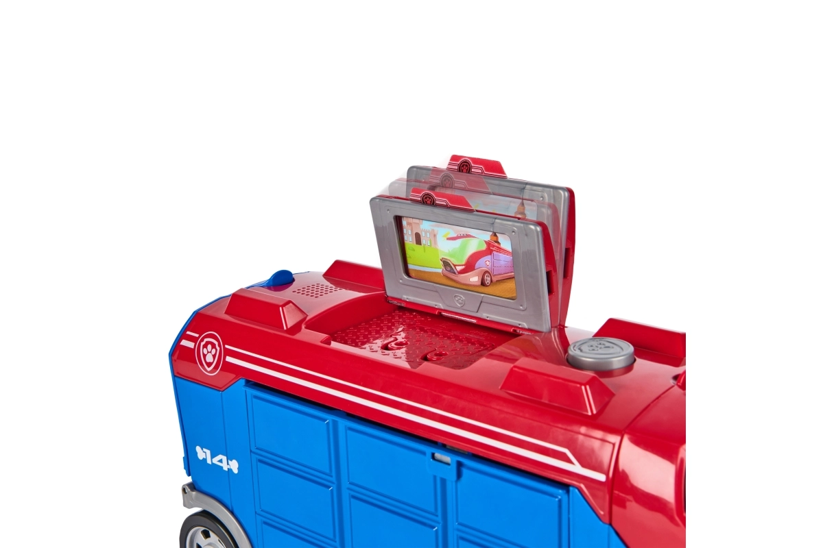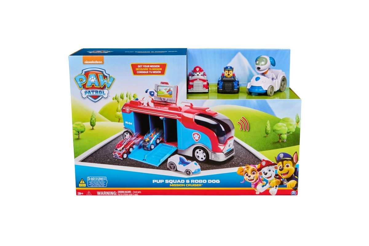 Mission Cruiser to mobilna centrala, która natychmiast przenosi dzieci do świata Psiego Patrolu. Otwierane boczne panele odsłaniają miejsca parkingowe dla mini pojazdów, a interaktywny monitor z kartą misji pomaga zaplanować kolejną akcję. Dzięki dźwiękom prosto z serialu każda wyprawa jest jeszcze bardziej ekscytująca.