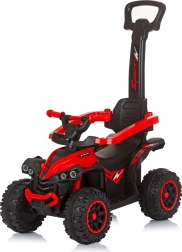 Jeździk CHIPOLINO ATV Red to świetny wybór na pierwsze przygody na czterech kołach. W trybie z prowadnikiem rodzice mają pełną kontrolę, a odpinany daszek chroni przed słońcem. Gdy dziecko nabierze pewności, uchwyt i daszek można łatwo zdjąć, a mały kierowca może jeździć całkowicie samodzielnie.