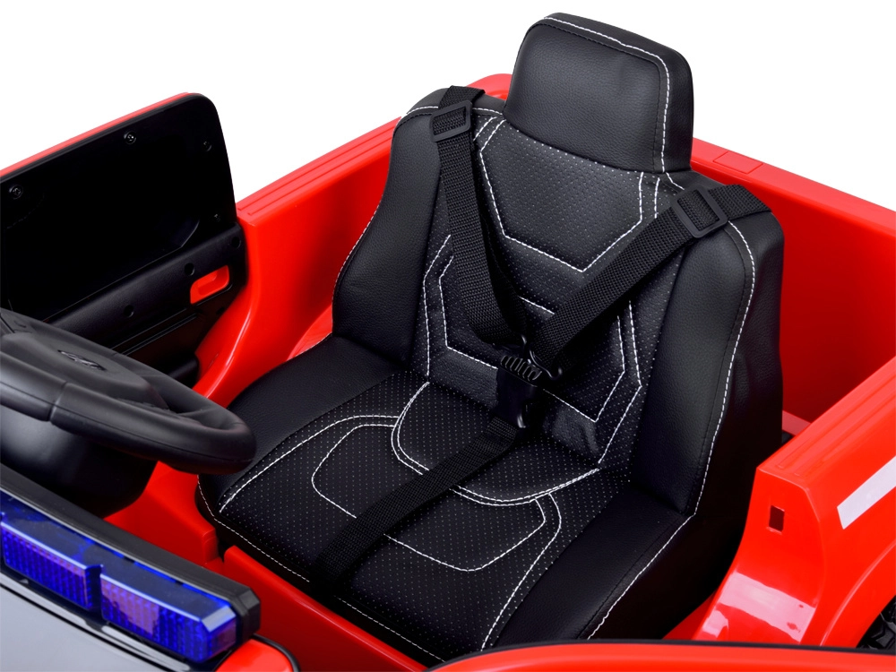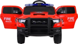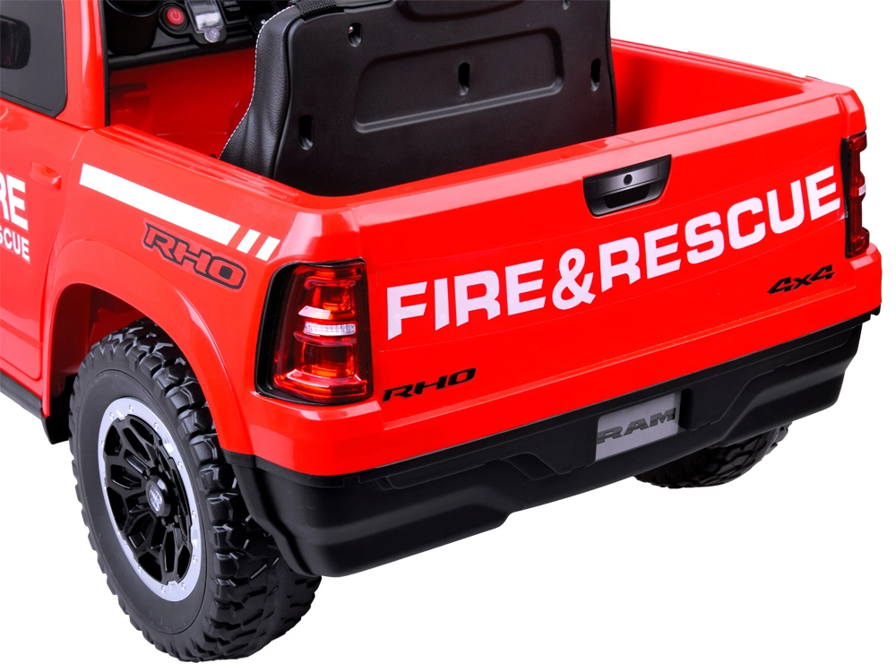 Licencjonowany samochód dziecięcy RAM w strażackiej wersji Fire & Rescue zapewnia realistyczne wrażenia z jazdy i akcji. Dzięki mocnym silnikom 4×12 V (25 W) i pojemnej baterii 12 V 10 Ah poradzi sobie z asfaltem, kostką i trawą. O komfort i bezpieczeństwo dbają miękkie koła EVA, tylne amortyzatory, otwierane drzwi oraz 3‑punktowy pas bezpieczeństwa na siedzeniu z eko‑skóry.