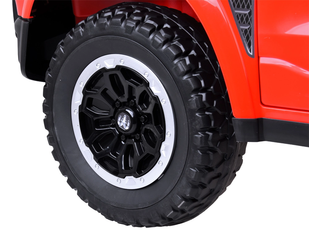 Steruj prędkością, kierunkiem i hamulcem przez pilot 2,4 GHz. Panel multimedialny oferuje USB/Mp3, muzykę, klakson oraz aktywację kogutów i syreny.