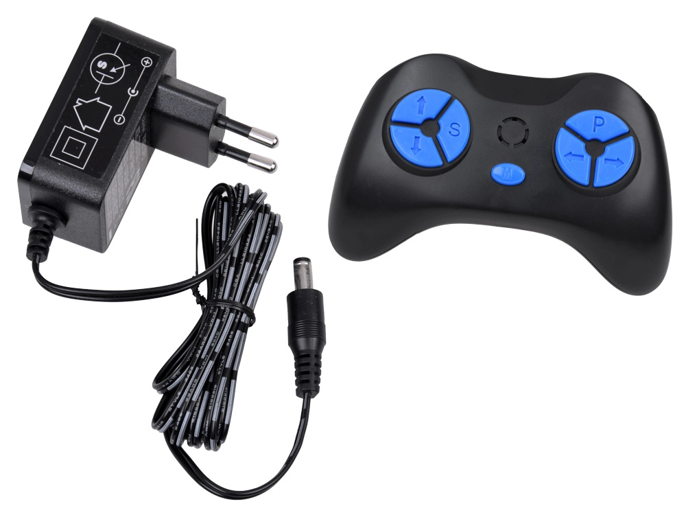 W zestawie jest pilot 2,4 GHz dla rodziców (jazda przód/tył, skręcanie, regulacja prędkości, hamulec). Dzięki funkcji płynnego startu pojazd nadaje się także dla młodszych dzieci. Z tyłu znajduje się praktyczna paka na drobiazgi niezbędne przy każdej „akcji”.