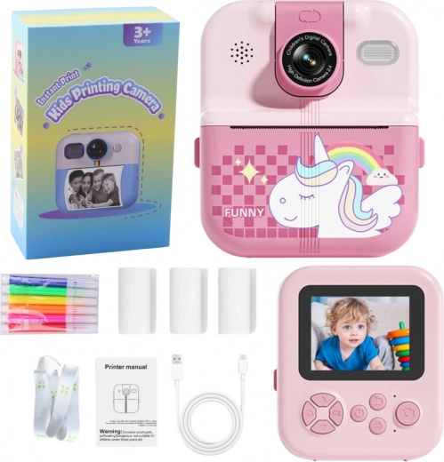 Dzięki temu urządzeniu dzieci mogą robić zdjęcia, nagrywać filmy i natychmiast drukować ulubione fotografie bez potrzeby tuszu. W zestawie znajdują się 3 rolki papieru termicznego gratis, co pozwala na natychmiastowe użycie. Urządzenie jest wyposażone w 2,4-calowy IPS HD ekran, który zapewnia jasny obraz i komfortowe przeglądanie zdjęć oraz filmów.