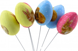 Wielkanocne jajka na patyczkach z kolorowymi zajączkami 6 szt.