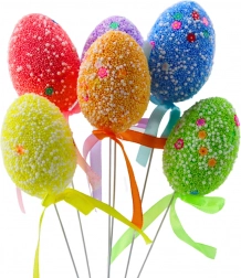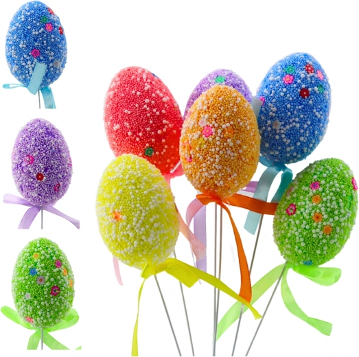 Każde jajeczko zdobione jest piankowymi koralikami oraz subtelnymi wzorami dla unikalnego wyglądu.