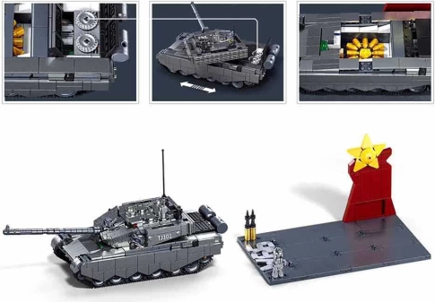 Zestaw konstrukcyjny czołgu ZTZ-99A marki Sluban Model Bricks zapewnia dzieciom i kolekcjonerom godziny zabawy i nauki. Dzięki 1079 elementom i 1 figurce zbudujesz szczegółowy model w skali 1:35, wykonany z trwałego i bezpiecznego plastiku ABS. Klocki są kompatybilne z LEGO, COBI i Mega Bloks, figurki mają obrotowe i odchylane części, a w zestawie znajduje się przejrzysta instrukcja.