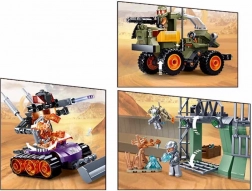- Dynamiczne wyposażenie: 5 uzbrojonych bohaterów, 2 pojazdy bojowe, elementy obronne bazy