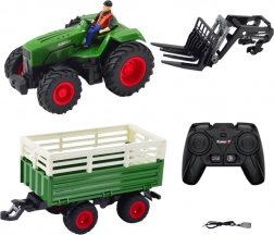 - RC traktor z przyczepą i widłami, pilot 2.4 GHz, akumulator 3.7 V 500 mAh, kabel USB, instrukcja, oryginalne opakowanie
