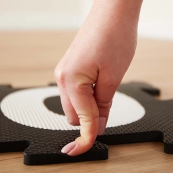 Piankowa mata do zabawy BIECO z motywem alfabetu łączy bezpieczeństwo, komfort i edukację. Dzięki grubości ok. 1 cm skutecznie tłumi uderzenia i chroni podczas zabawy na leżąco, raczkowania i pierwszych kroków. Minimalistyczne wzornictwo black & white wpasuje się w każde wnętrze.