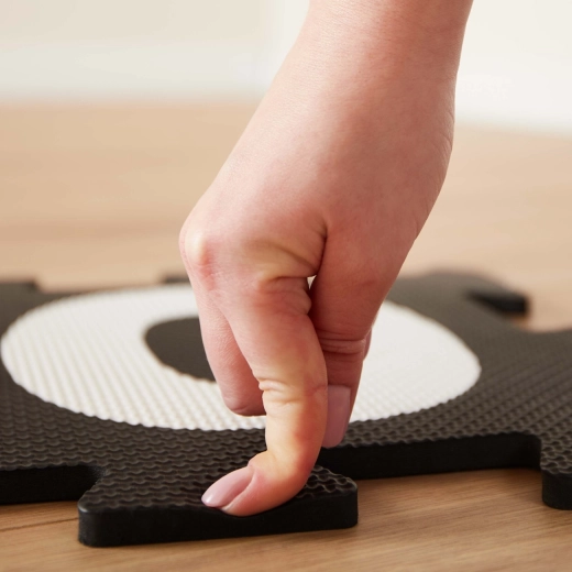 Każdy element z literą można wyjąć i wykorzystać do zabaw, budowania lub nauki. Złożenie zajmuje chwilę, a zmienne krawędzie pozwalają układać mniejsze powierzchnie lub większe zestawy. Materiał z pianki EVA jest odporny na zabrudzenia i łatwo go czyścić wilgotną ściereczką.