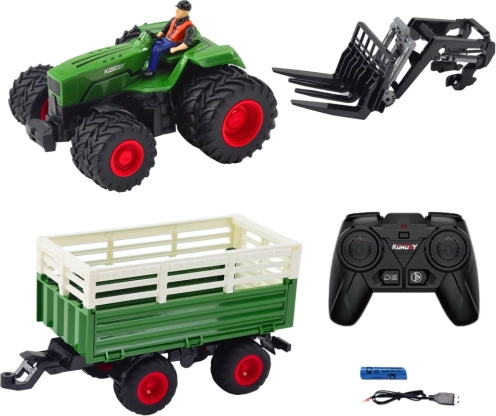 Zabawa z zdalnie sterowanym traktorem, wyposażonym w przyczepę i widły, nigdy się nie kończy! Podwójne koła dla lepszej stabilności oraz ładowanie przez USB zapewniają długą zabawę – idealny dla małych farmerów.