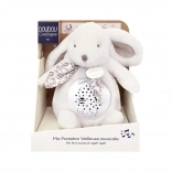 Odkryj magię uspokajającego snu z króliczkiem Doudou, który łączy miękkość pluszowej zabawki z fascynującą projekcją kosmosu w 7 kolorach. Pozytywka oferuje 10 delikatnych melodii i 5 uspokajających dźwięków, które pomogą dziecku zasnąć.