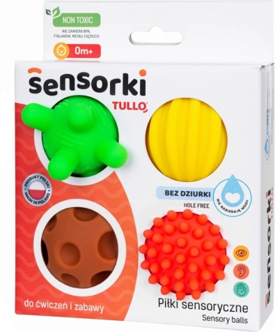 Tullo prezentuje innowacyjny zestaw sensorycznych piłeczek, idealny do wspierania rozwoju zmysłów u dzieci od urodzenia. Te kule są w pełni bezpieczne, ponieważ nie mają żadnych otworków, co czyni je higienicznym i bezpiecznym produktem dla najmłodszych.