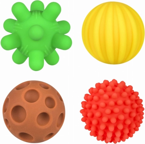 Każda piłeczka ma unikalną fakturę i kolor, co dostarcza różnorodnych wrażeń sensorycznych oraz wspiera rozwój umiejętności dotykowych i wzrokowych.