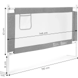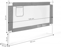 Bezpieczeństwa barierka do łóżka o szerokości 150 cm od ECOTOYS chroni dzieci przed upadkiem, jednocześnie umożliwia rodzicom wygodne wspólne spanie. Oferuje regulowaną wysokość, składaną górną listwę dla łatwego dostępu, oddychającą siatkę oraz praktyczną kieszeń na drobiazgi. Uniwersalny montaż, możliwość połączenia kilku barierek i solidna stalowa konstrukcja zapewniają długą żywotność i maksymalne bezpieczeństwo.