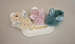Podaruj swojemu dziecku poczucie spokoju i bezpieczeństwa dzięki temu zestawowi, który obejmuje nie tylko pluszowego króliczka z elegancką kokardką, ale także buciki z nadrukiem króliczych uszek i haftowaną buzią.