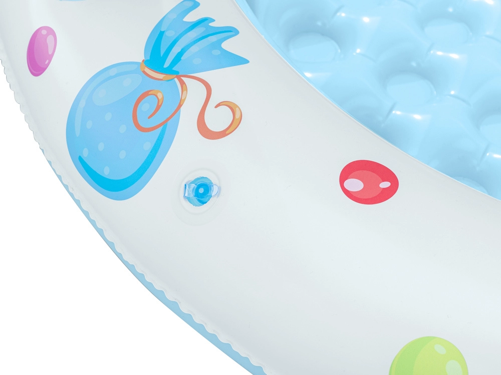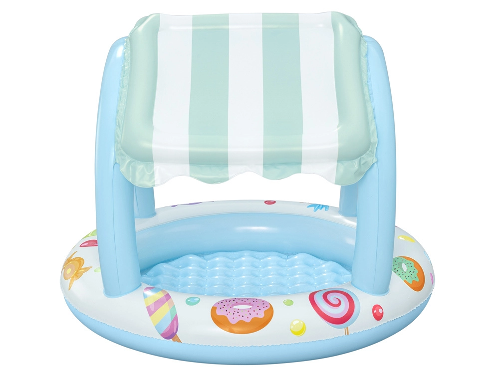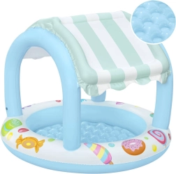 Uroczy dziecięcy basen Bestway z zadaszeniem i miękkim, dmuchanym dnem to idealna propozycja dla małych miłośników letnich zabaw w wodzie. Wyposażony jest w atrakcyjną grafikę ulubionych słodkości, które przyciągną uwagę dzieci od pierwszego spojrzenia.