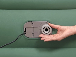 Materac wyposażono w wbudowaną pompkę elektryczną, która pozwala napompować go w zaledwie 3 minuty. W razie potrzeby można go również napompować pompką ręczną, co jest praktyczne w miejscach bez dostępu do prądu.