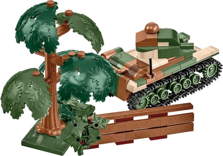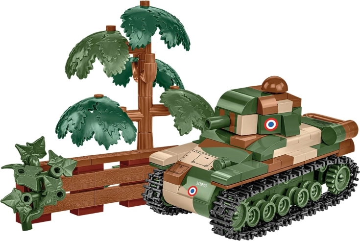 Zestaw obejmuje funkcjonalne elementy dla jeszcze lepszych wrażeń: obrotową wieżę, ruchomy układ gąsienicowy oraz dodatki scenerii (płot, drzewo i roślinność). W komplecie znajdują się polskie i francuskie insygnia, więc możesz wybrać preferowaną wersję. Przejrzysta instrukcja gwarantuje wygodne składanie krok po kroku.