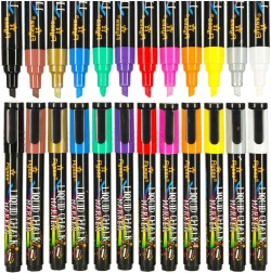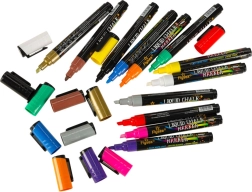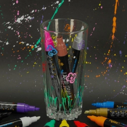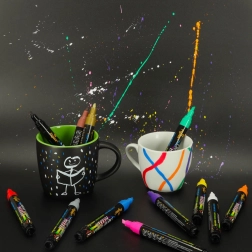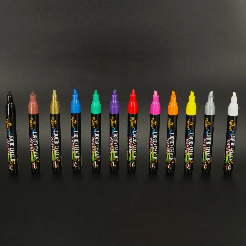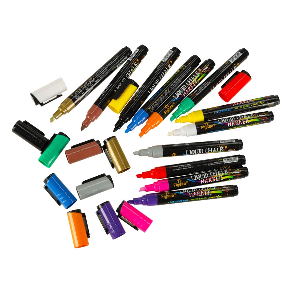 Dodaj koloru swoim pomysłom z naszym zestawem 12 kolorowych markerów kredowych! Zestaw zawiera 12 żywych odcieni, które wyróżnią napisy, ilustracje i dekoracje. Idealne do ozdabiania witryn, luster, tablic suchościeralnych, ceramicznych kubków i innych gładkich powierzchni.