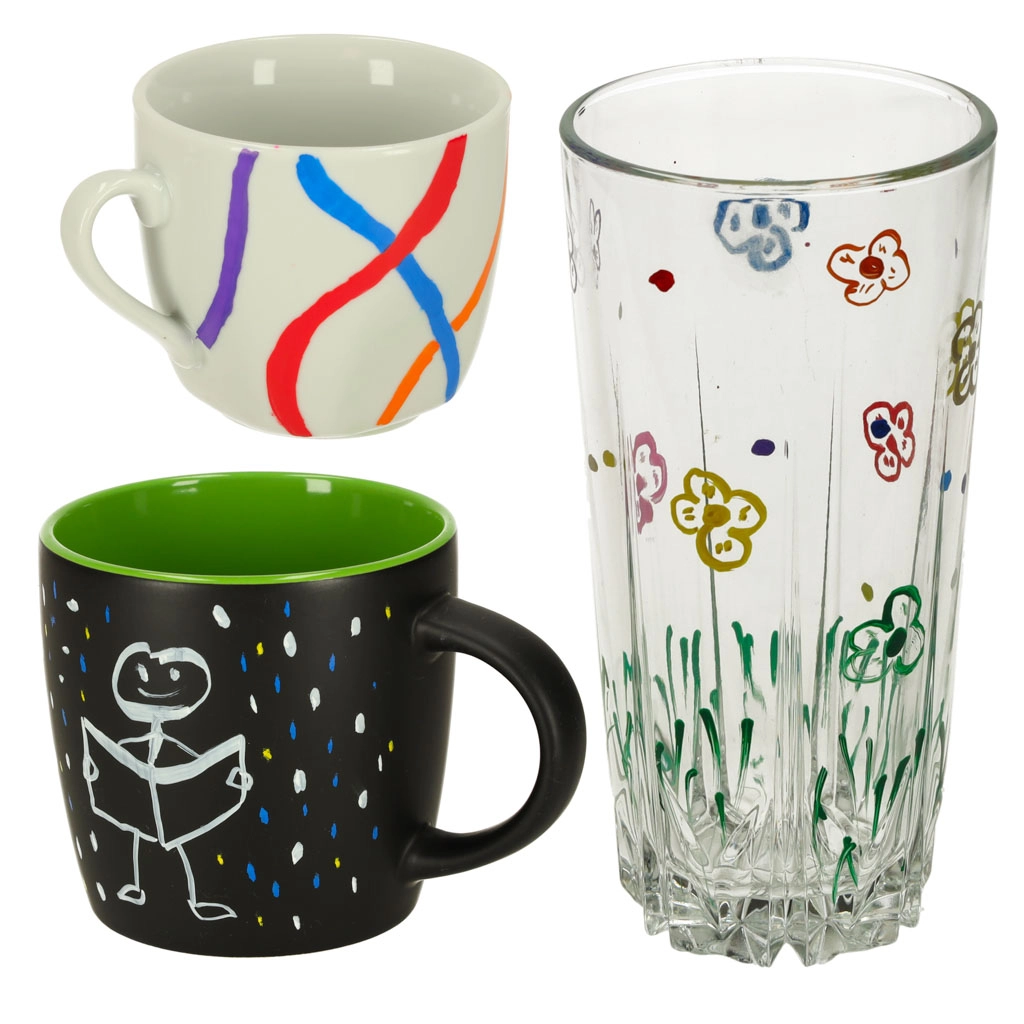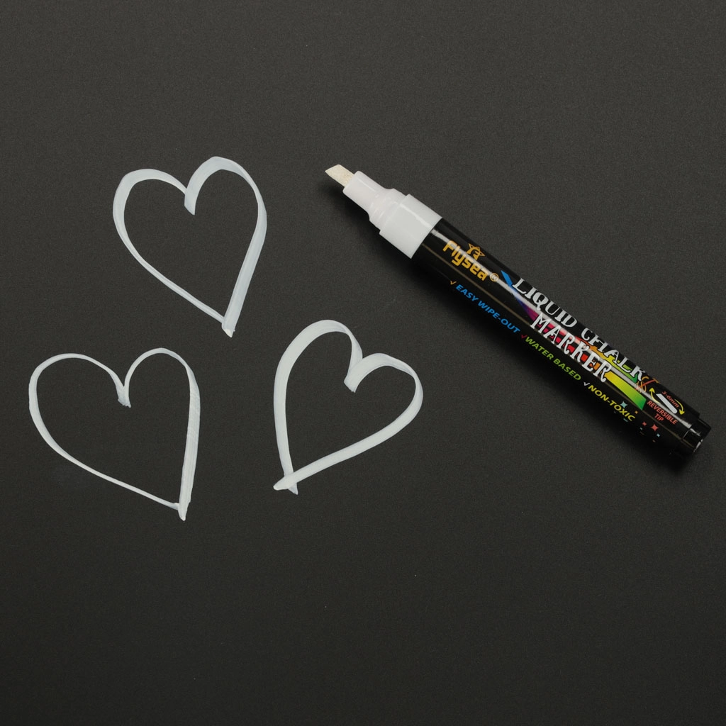 - Tusz na bazie kredy i wody – łatwy do usunięcia wilgotną ściereczką, bez pozostawiania smug czy zabrudzeń.