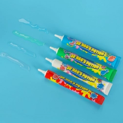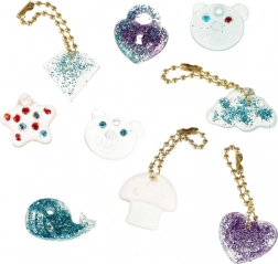 Zestaw zawiera cztery tubki kleju w różnych kolorach oraz foremki z rozmaitymi wzorami.