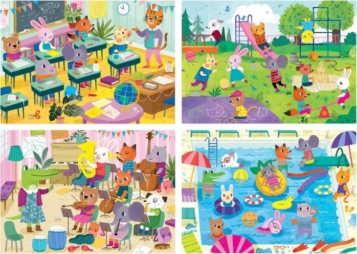 Educa puzzle Dzień w szkole 4w1 (20–80 elementów)