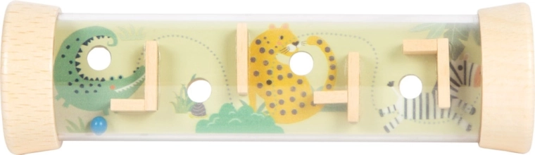 Ten dwustronny kulodrom łączy zabawę i doświadczenie sensoryczne w jednej solidnej, przezroczystej tubie. Dzieci starają się naprowadzić 4 kolorowe drewniane kuleczki do przygotowanych otworów, a delikatne grzechotanie wspiera stymulację słuchową. Ilustracje zwierząt, takich jak krokodyl, zebra, lew czy żyrafa, pobudzają fantazję i naturalną ciekawość.