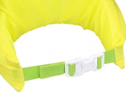 Wytrzymała plastikowa klamra z regulowanym paskiem zapinana jest na plecach, dzięki czemu dziecko nie odepnie jej samodzielnie. Zapewnia pewne i stabilne dopasowanie podczas zabawy i pływania.