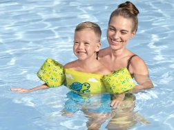 Wesołe kolory i uśmiechnięty żółw zwiększają widoczność w wodzie i motywują dzieci do bezpiecznej nauki pływania oraz codziennej zabawy w wodzie.