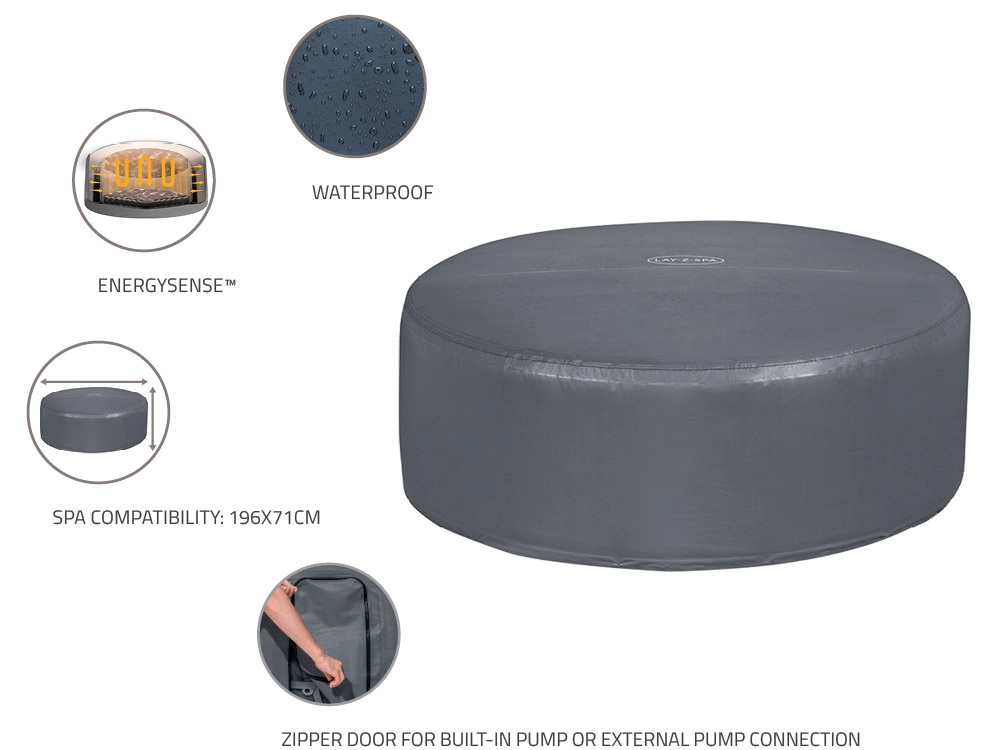 - Kompatybilność z okrągłymi wannami 196 cm (np. Lay‑Z‑Spa St. Moritz, Monaco, Santorini HydroJet Pro)