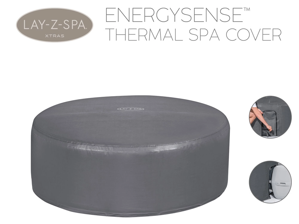 Premiumowa pokrywa termiczna Lay‑Z‑Spa EnergySense Plus została zaprojektowana z myślą o maksymalnej efektywności i długiej żywotności. Trójwarstwowy materiał DuraPlus jest odporny na promieniowanie UV i warunki atmosferyczne, a udoskonalona podwójna warstwa izolacyjna przyspiesza nagrzewanie wody i wydłuża czas utrzymania przyjemnej temperatury w wannie.