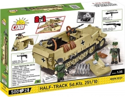 Zestaw Half-Track Sd.Kfz. 251 zapewnia autentyczne wrażenia z budowy i zabawy. Dzięki szczegółowym nadrukom, ruchomym kołom z gumowymi oponami i realistycznym gąsienicom model zachowuje się jak prawdziwy pojazd. Otwierane tylne drzwi i liczne akcesoria wspierają kreatywne scenariusze.