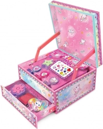 Odkryj zabawę ze stemplami w uroczym motywie kotki baletnicy. Stylowe pudełko–szkatułka po otwarciu wieczka samo się wysuwa, dzięki czemu wszystko jest pod ręką i łatwo się porządkuje. Idealne do twórczej zabawy w domu i w podróży.