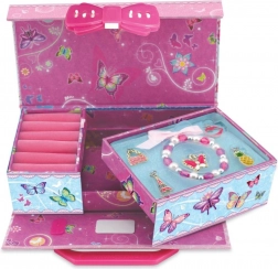 Urocza szkatułka na biżuterię Pecoware z motywem motylków ucieszy każdą małą elegantkę. Ma praktyczne zamknięcie na zamek szyfrowy, a w zestawie znajdziesz bransoletkę oraz 5 zawieszek typu charms do własnego ozdabiania.