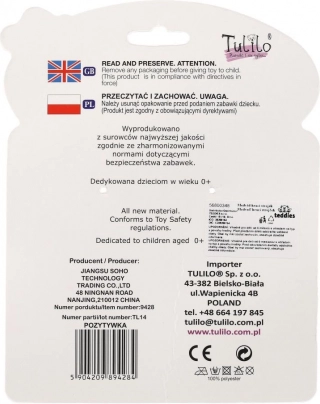 Bez ostrych krawędzi, staranne szycie i miękkie wypełnienie zapewniają bezpieczną zabawę i przytulanie od pierwszych miesięcy.