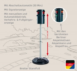 Dziecięcy sygnalizator BIG jest doskonałą pomocą w nauce zasad ruchu drogowego dla najmłodszych. Dzięki realistycznej zmianie świateł i licencjonowanym postaciom Ampelmännchen & Ampelfrau od marki AMPELMANN, dzieci od 3 roku życia mogą bezpiecznie bawić się i uczyć się o ruchu drogowym.