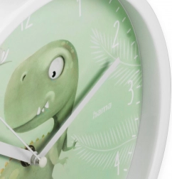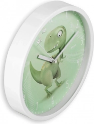 Ten dziecięcy zegar ścienny wniesie do każdego pokoju radość i kolory. Dzięki zielonej tarczy z motywem dinozaura przyciąga uwagę dzieci i zachęca je do nauki odczytywania czasu.