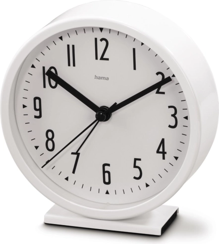 Budź się zawsze na czas z budzikiem Hama Skye, który łączy nowoczesny, minimalistyczny design z niezawodną funkcjonalnością. Duża biała tarcza z kontrastowymi czarnymi cyframi arabskimi zapewnia szybką orientację nawet w gorszych warunkach oświetleniowych, a płynny bieg sekundnika eliminuje uciążliwe tykanie.