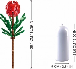 Gotowy model osiąga wysokość 39,1 cm, a dopełnia go subtelny wazon (9 × 9 × 21,6 cm), dzięki któremu kwiat stoi stabilnie i pięknie się prezentuje.