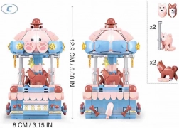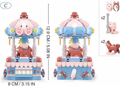Elementy są wykonane z bezpiecznego, trwałego plastiku ABS i w pełni kompatybilne z innymi popularnymi klockami konstrukcyjnymi. Kolekcja oferuje 3 motywy (kotka, piesek, miś), więc możesz stworzyć całą serię uroczych karuzelek.