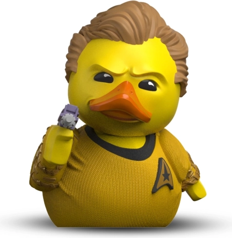 Ta oficjalnie licencjonowana mini kaczuszka TUBBZ przedstawia kapitana Jamesa T. Kirka w zabawnym wydaniu z dbałością o detale – złoty mundur ze znakiem Floty, starannie uformowane włosy i mały fazer w skrzydle. Idealna jako prezent dla fanów STAR TREK i miłośników popkultury.