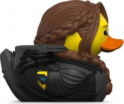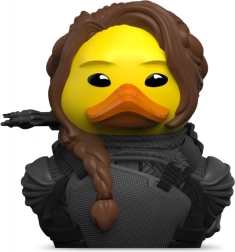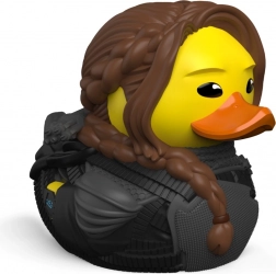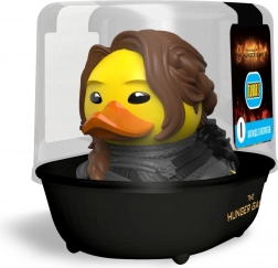 Ta gumowa kaczka jest starannie zaprojektowana z precyzją detali, odzwierciedlając ikoniczny wygląd bohaterki Katniss Everdeen z brązowymi warkoczami i czarnym kostiumem. Kaczka ma około 9 cm i jest wykonana z wysokiej jakości materiału PVC, co zapewnia jej odporność i długowieczność.