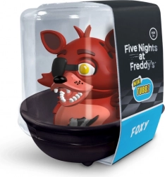 Wzbogacaj swoją kolekcję tą unikalną kaczuszką Mini Foxy. Wyróżnia się czerwonym kolorem oraz pirackimi detalami, w tym opaską na oko i metalowymi elementami, co gwarantuje atrakcyjność dla wszystkich fanów gry Five Nights at Freddy's.