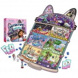 Detektywistyczna przygoda dla dzieci i rodziców osadzona w uwielbianym świecie Kociego domku Gabi. Gra Detektyw Miau opiera się na szybkiej orientacji, wspólnym podejmowaniu decyzji i uważnym obserwowaniu detali na dużej planszy. Waszym celem jest odnaleźć właściwe tropy i powstrzymać psotnika, zanim będzie za późno.